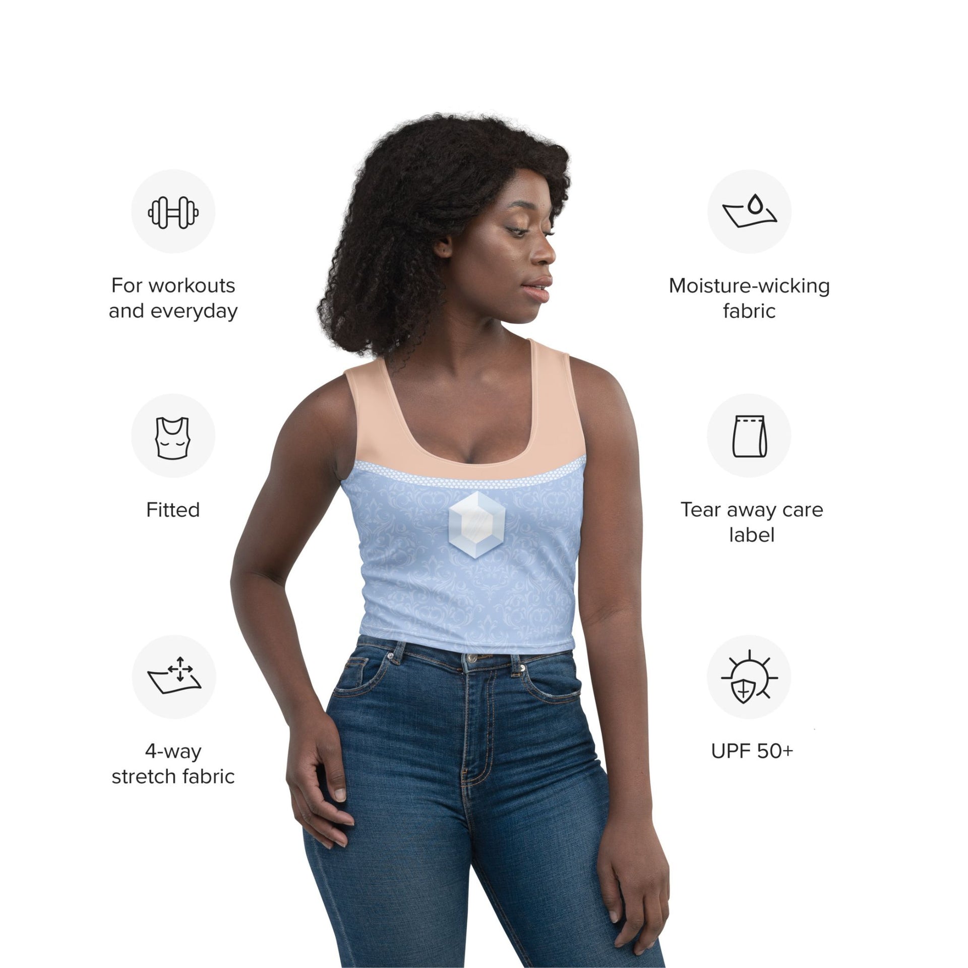 This crop top is fit for royalty and will be your go-to top when your kingdom calls for fitness. This stylish tank is a great choice for a workout, with its moisture-wicking material, keeping you comfortable even when you break a sweat. So go ahead and run that extra mile - in royal style!